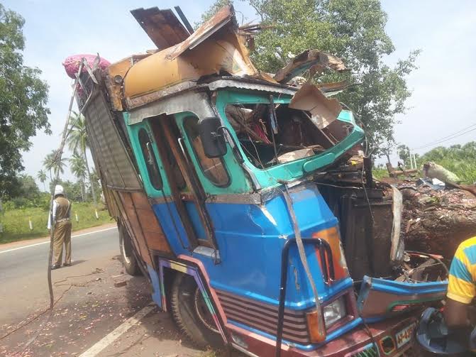 யாழ்ப்பாணம் நெல்லியடி பகுதியிலிருந்து தம்புள்ளைக்கு மரக்கறிகளை ஏற்றிச் சென்றுகொண்டிருந்த பாரவூர்தியின் முன் சில்லு ரயர் வெடித்ததாலேயே, பாரவூர்தி வேகக்கட்டுப்பாட்டை இழந்து மரத்துடன் மோதியது. இருவரது சடலங்களும் பளை வைத்தியசாலையில் வைக்கப்பட்டுள்ளது.