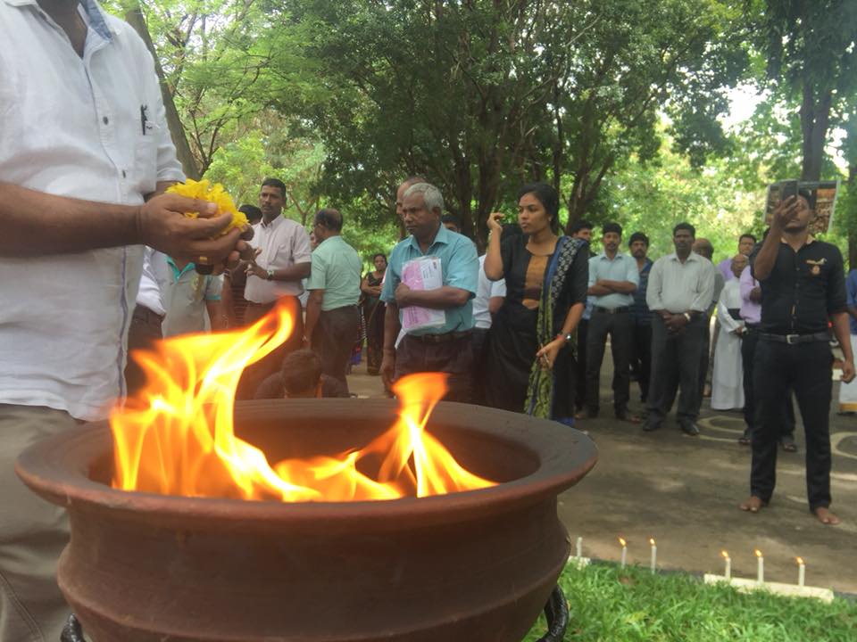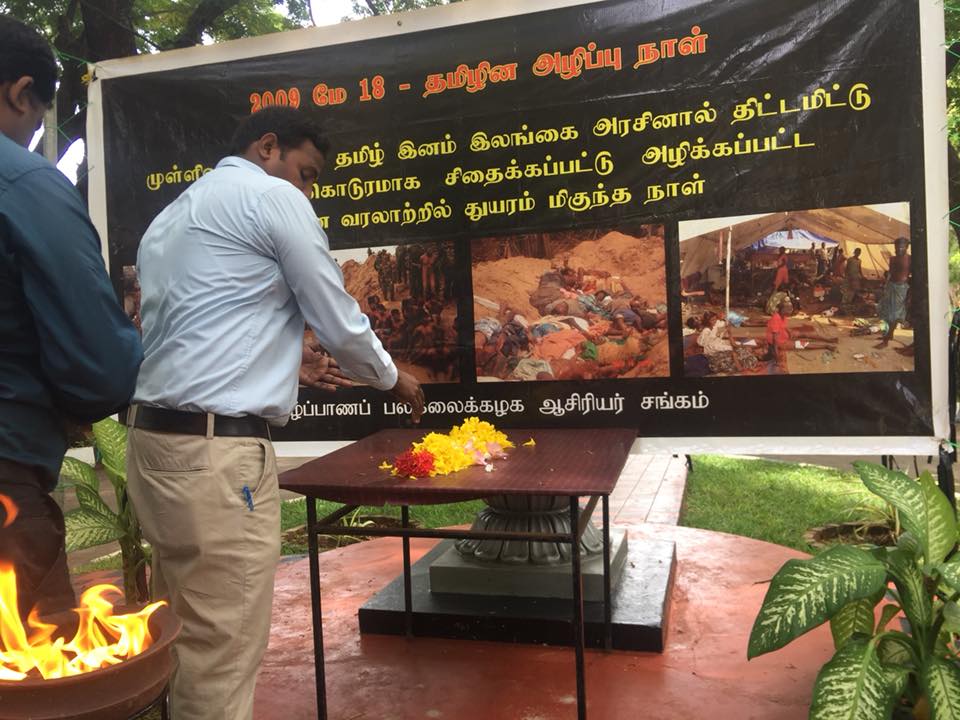 ஈழச்செய்திகள்சிறப்பு செய்திகள் யாழ். பல்கலையில் உணர்வுகொண்ட முள்ளிவாய்க்கால் நினைவேந்தல்! By Admin - May 18, 2018 0 1005 யாழ்.பல்கலைக்கழகத்தில் மே 18 முள்ளிவாய்க்கால் ஒன்பதாவது ஆண்டு நினைவேந்தல் யாழ்.பல்கலை ஆசிரியர் சய்கத்தின் ஏற்பாட்டில் எழுச்சியாக நடைபெற்றது. இதில் பல்கலை பேராசிரியர்கள், ஊழியர்கள், மாணவர்கள், பொதுமக்கள் எனப்பலரும் கலந்துகொண்டதைக் காணமுடிந்தது.