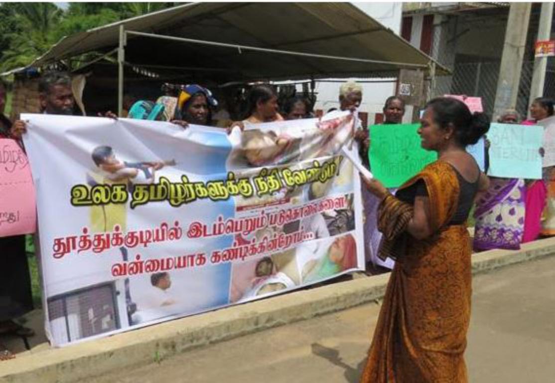 தூத்துக்குடி படுகொலையைக் கண்டித்து காணாமல் ஆக்கப்பட்டவர்களின் உறவினர்கள் கிளிநொச்சியில் கந்தசுவாமி ஆலய முன்றலில் கண்டனப் போராட்டத்தை முன்னெடுத்திருந்தனர்.
