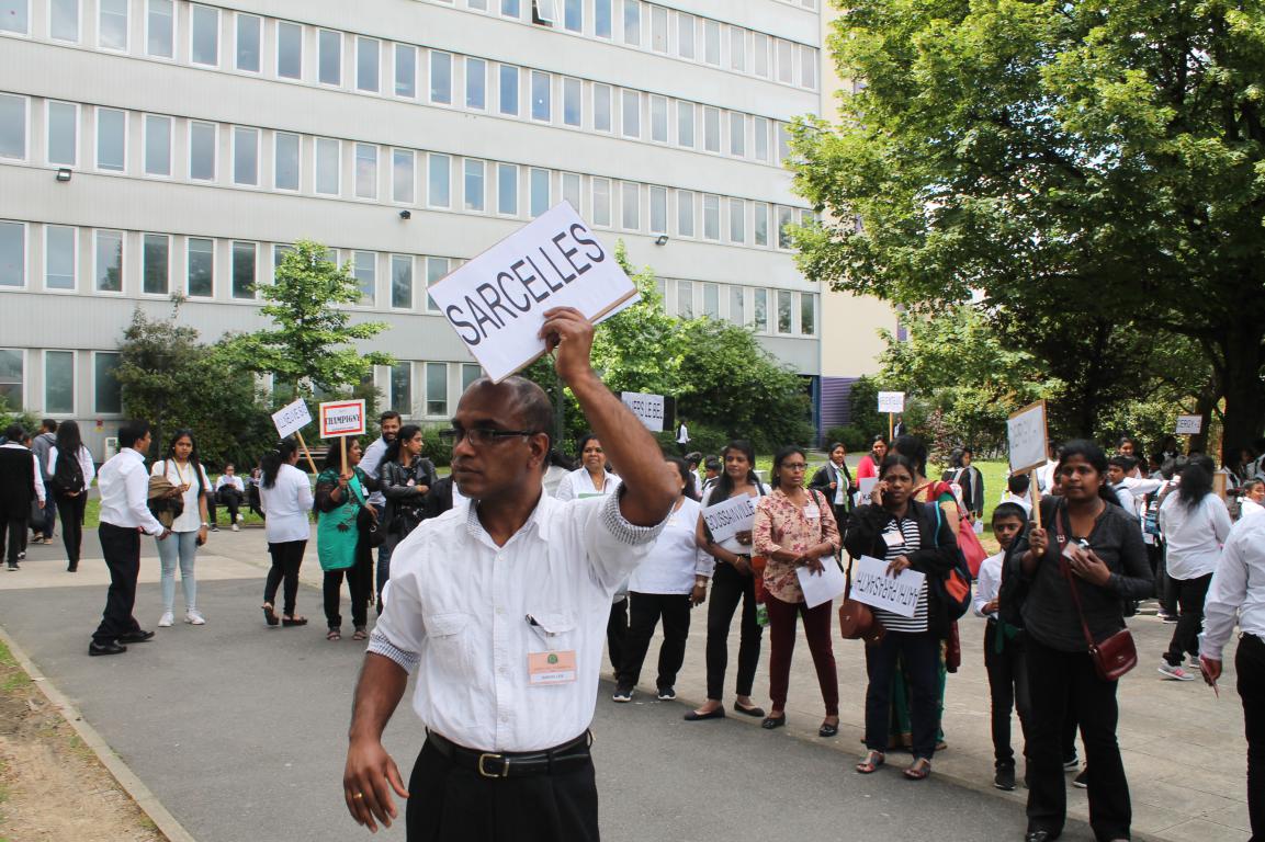 RER B தொடருந்தில் தமிழ் மக்களே பெரும் எண்ணிக்கையில் தேர்வு மண்டபப் பகுதியில் வந்து இறங்குவதைக் காணமுடிந்தது.