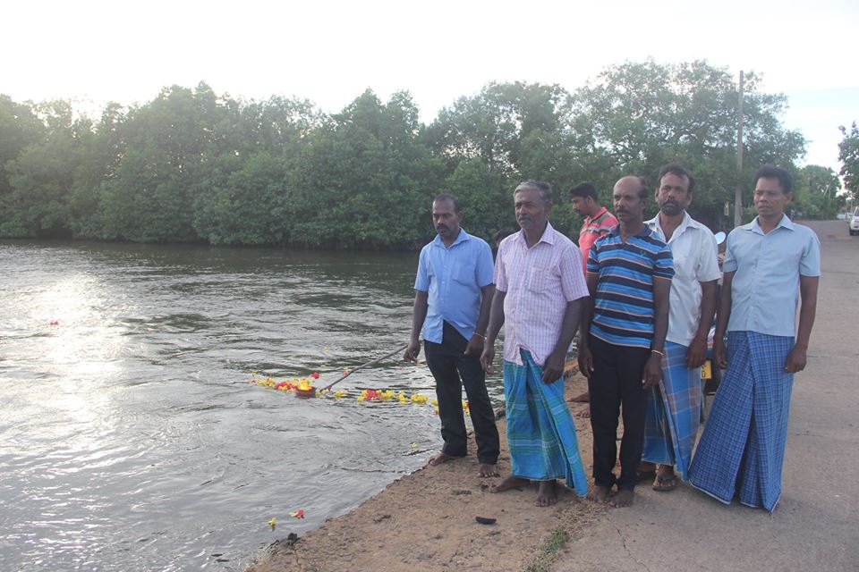 நினைவுரையைத் தொடர்ந்து மூத்த போராளி இலக்கியன் நினைவுச்சுடரை ஏற்றி நீரில் அனுப்பிவைக்க, மாவட்டச் செயலாளர் குகன், மூதூர் பிரதேசசபை உறுப்பினர் சத்தியன், பிரதேச இணைப்பாளர்களுள் ஒருவரான கரன் மற்றும் மக்கள் மலர்தூவி நினைவேந்தலை நிறைவு செய்தனர்.