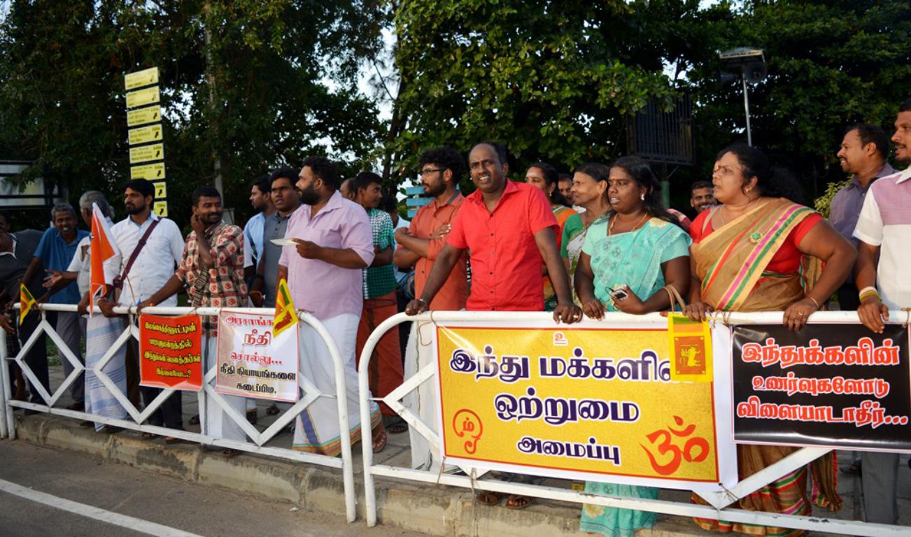அகில இலங்கை சைவ மகா சபை ஆர்ப்பாட்டத்தை ஏற்பாடு செய்துள்ளது. அதில் இந்து சமயப் பிரதிநிதிகள், மாநகர சபை உறுப்பினர்கள் மற்றும் இளைஞர் அமைப்புக்கள் கலந்து கொண்டுள்ளனர்.