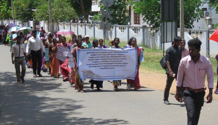 கிளிநொ்சி கரடிபோக்கு சந்தியிலிருந்து ஆரம்பிக்கப்பட்ட ஊர்வலம், கிளிநொச்சி மாவட்டச் செயலகம் வரை சென்று அங்கு கவனவீர்ப்பு போராட்டம் முன்னெடுக்கப்பட்டது.
