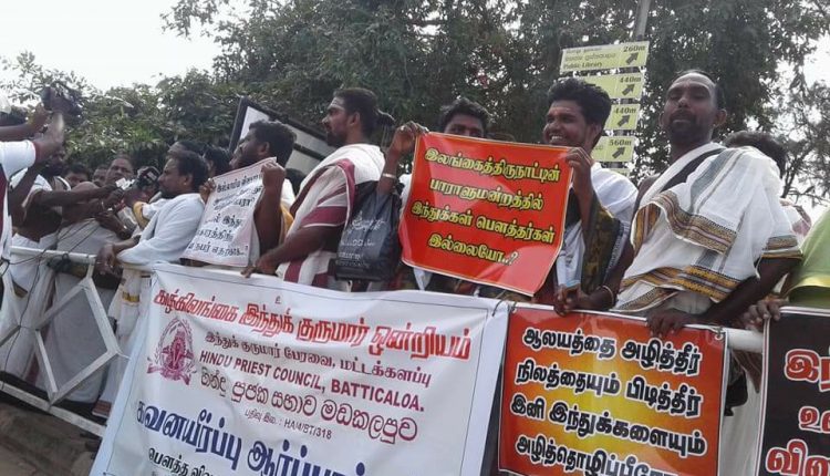 ஆர்பாட்டக்காரர்கள் மட்டக்களப்பு மாவட்டச் செயலகத்துக்குச் சென்று, மாவட்ட இந்து கலாச்சார உத்தியோகத்தரிடம் மனுக் கையளித்தனர்.
