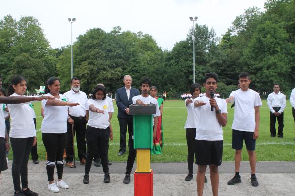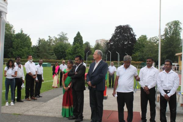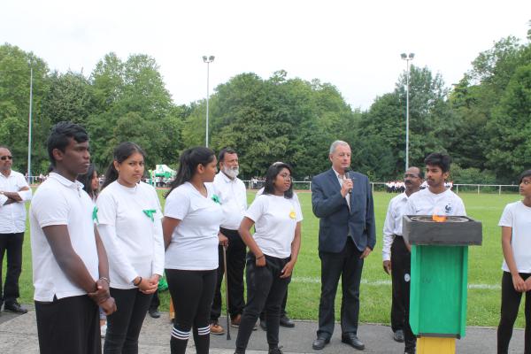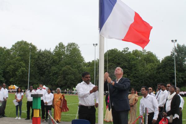 நிகழ்வில் பொதுச்சுடரினை செல் தமிழ்ச்சங்க விளையாட்டுத்துறைப் பொறுப்பாளர் திரு.பதி அவர்கள் ஏற்றிவைக்க பிரெஞ்சுக்கொடியை செல் பிரதி நகரபிதா M. Alain Mamou அவர்கள் ஏற்றிவைத்தார்.