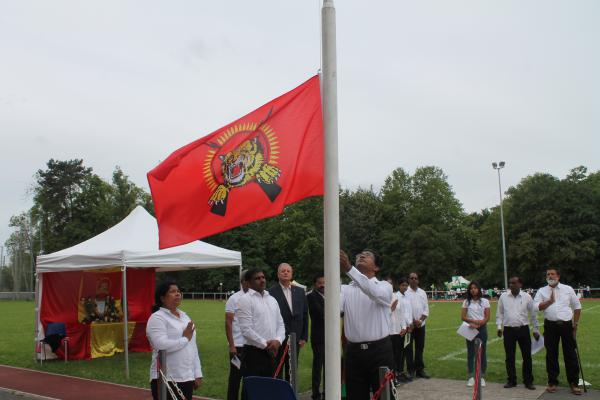 தொடர்ந்து தமிழீழத் தேசியக் கொடியினை செல்.பிராங்கோ தமிழ்ச் சங்கத் தலைவர் திரு. நிமலகுமாரன் அவர்கள் ஏற்றிவைத்தார்.