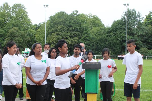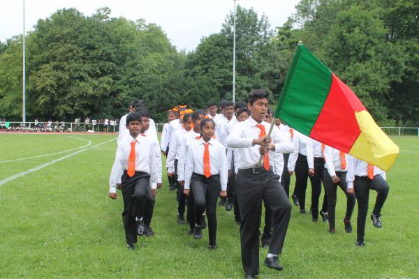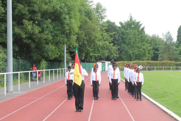 தமிழ்ச்சோலை மாணவ மாணவிகளின் அணிநடை இடம்பெற்றது. அணிவகுப்பு மரியாதையை மாவீரர் 2 ஆம் லெப். மாமருதன் அவர்களின் தாயார் அவர்களும், செல் பிரதி நகரபிதா M. Alain Mamou அவர்களும், பிரான்சு தமிழர் விளையாட்டுத்துறை உறுப்பினரும் உதவி போட்டி முகாமையாளருமான திரு.பீலிக்ஸ் அவர்களும் பிரான்சு தமிழர் ஒருங்கிணைப்புக்குழு பரப்புரைப் பொறுப்பாளர் திரு.மேத்தா அவர்களும், தமிழ்ச்சோலைத் தலைமைப்பணியக செயற்பாட்டாளர் திரு.புண்ணியமூர்த்தி அவர்களும், செல் தமிழ்ச்சோலை நிர்வாகி திருமதி மாலினி பீலீக்ஸ் அவர்களும் ஏற்றுக்கொண்டனர்.
