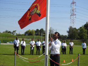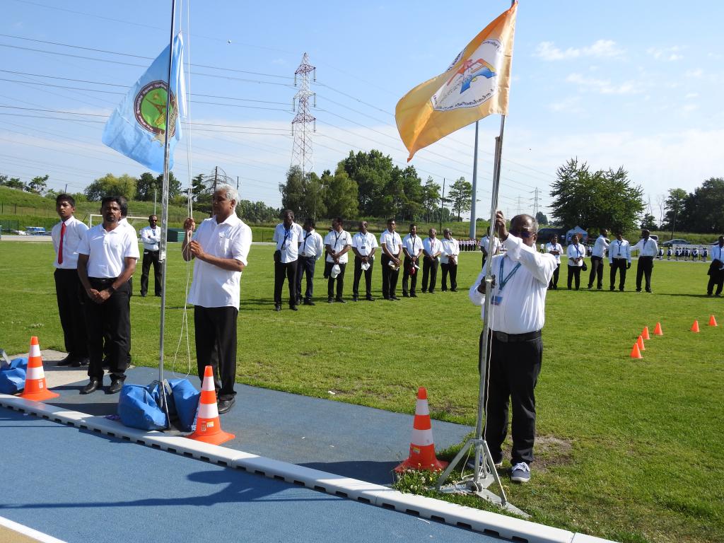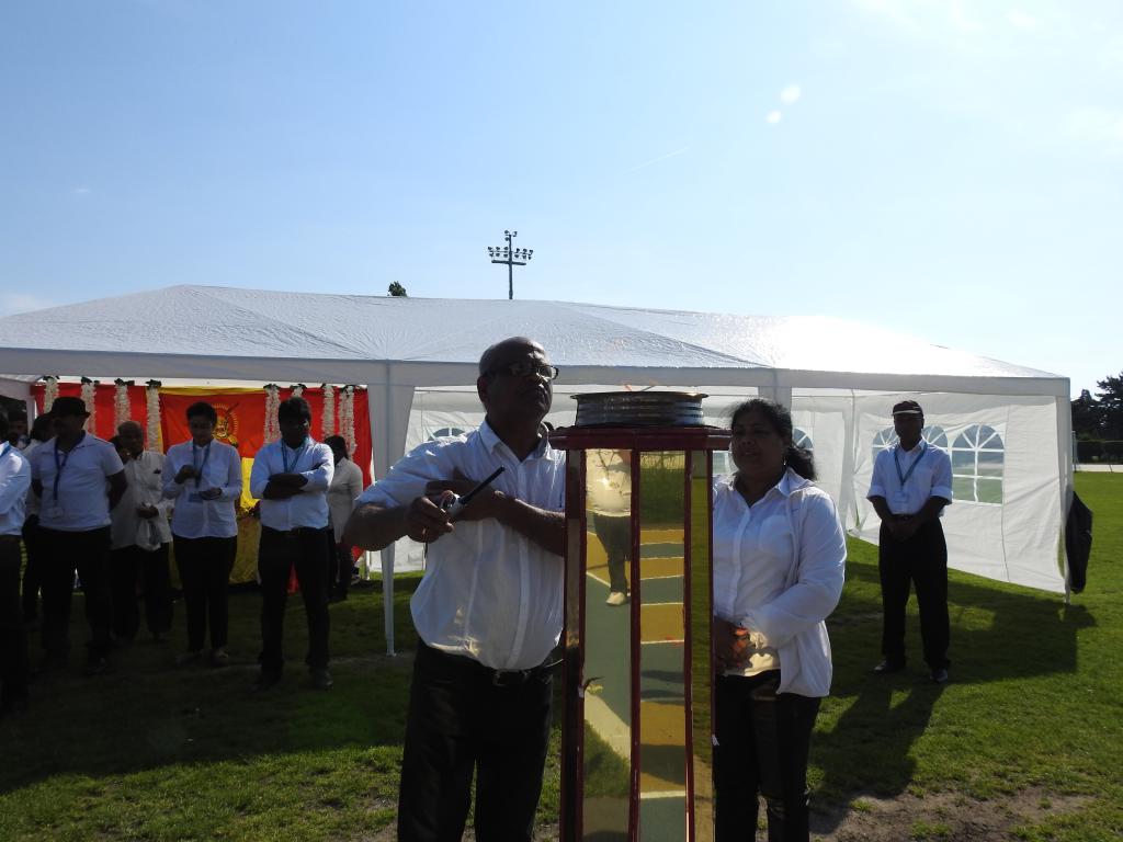 பான்ட் தாளவாத்திய அணிவகுப்புடன் விருந்தினர்கள் அழைத்து வரப்பட்டதைத் தொடர்ந்து பொதுச்சுடரினை பிரான்சு தமிழர் ஒருங்கிணைப்புக்குழு நிர்வாகப்பொறுப்பாளர் திரு. பாலசுந்தரம் அவர்கள் ஏற்றிவைக்க பிரெஞ்சுக்கொடியை சார்சல் தமிழ் சங்க பரப்புரைப்பொறுப்பாளர் திரு.கணபதிப்பிள்ளை அவர்கள் ஏற்றிவைக்க, தமிழீழத் தேசியக் கொடியை பிரான்சு தமிழர் ஒருங்கிணைப்புக்குழு விளையாட்டுத்துறைப்பொறுப்பாளர் திரு. கிருபா அவர்கள் ஏற்றிவைக்க, ஈகைச்சுடரினை 18.02.1984 அன்று பொலிகண்டிப் பகுதியில் வீரவேங்கை செல்வம் பகீன் அவர்களின் சகோதரி ஏற்றிவைத்து மலர்மாலை அணிவித்தார். அகவணக்கத்தைத் தொடர்ந்து, தமிழ் சங்கங்களின் கூட்டமைப்புக்கொடியை அதன் செயலாளர் திரு.சாந்திக்குமார் அவர்களும் தமிழ்ச்சோலைத் தலைமைப்பணியகக் கொடியை அதன் பொறுப்பாளர் திரு.ஜெயக்குமார் அவர்களும் ஏற்றிவைத்ததைத் தொடர்ந்து இல்லப்பொறுப்பாளர்களால் இல்லக்கொடிகள் ஏற்றிவைக்கப்பட்டன.