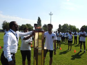 ஒலிப்பிக் தீபத்தை மெய்வல்லுநர் போட்டி முகாமையாளர் திரு.இராஜலிங்கம் அவர்கள் மெய்வல்லுநர் போட்டித் தலைவன் ஞானச்சந்திரன் நிதர்சன் மற்றும் மெய்வல்லுநர் தலைவி பாலச்சந்திரன் கர்சனா ஆகியோரிடம் ஒப்படைத்தார். தொடர்ந்து வீரர்கள், நடுவர்கள் சத்தியப்பிரமாணம் இடம்பெற்றதையடுத்து போட்டிகள் ஆரம்பமாகின.