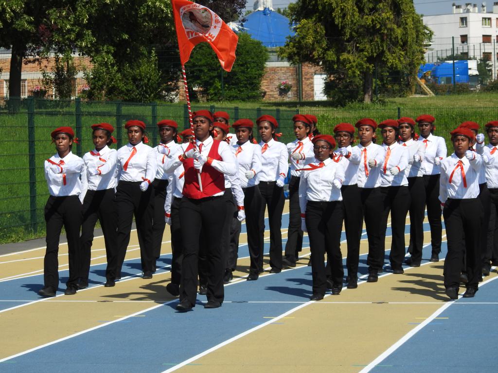 தமிழ்ச்சோலை இல்ல மாணவர்களின் அணிநடை அணிவகுப்பு மிகவும் நேர்த்தியாக அமைந்திருந்தமை கண்கொள்ளாக் காட்சியாக இருந்தது. அணிவகுப்பு மரியாதையை வீரவேங்கை செல்வம் பகீன் அவர்களின் சகோதரி பிரான்சு தமிழர் ஒருங்கிணைப்புக்குழு பொறுப்பாளர் திரு.மகேஸ், தமிழ்சோலைத் தலைமைப் பணியகப் பொறுப்பாளர் திரு.ஜெயக்குமார், மெய்வல்லுநர் போட்டி துணைமுகாமையாளர் திரு.பீலிக்ஸ், சார்சல் தமிழ்ச்சங்கத் தலைவர் திரு.டக்ளஸ், தமிழ் சங்கங்களின் கூட்டமைப்புப் செயலாளர் திரு.சாந்திக்குமார் ஆகியோர் ஏற்றுக்கொண்டனர்.