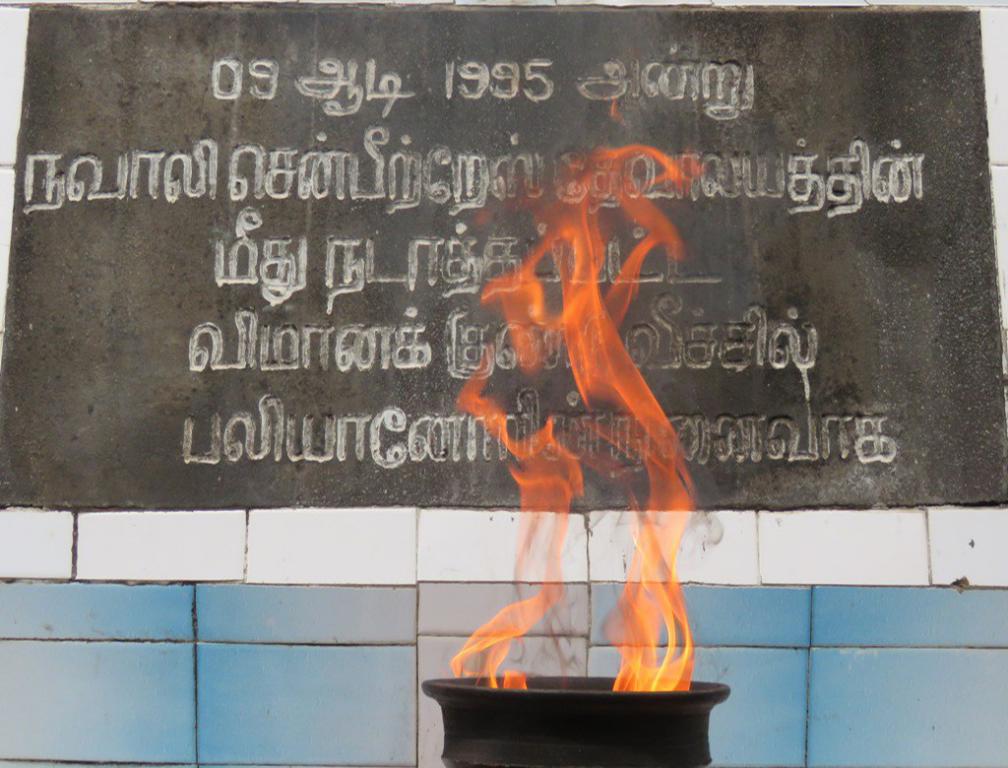 1995ஆம் ஆண்டு முன்னோக்கிப் பாய்தல் இராணுவ நடவடிக்கையினால், நவாலியில் மக்கள் தஞ்சமடைந்திருந்த தேவாலயத்தின் மீது சிறீலங்கா வான்படையின் வானூர்தி 13 குண்டுகளைத் தொடர்ச் சியாக அந்த மக்கள் மீதும், அவர்கள் தஞ்சமடைந்திருந்த ஆலயங்கள் மீதும் வீசியது.