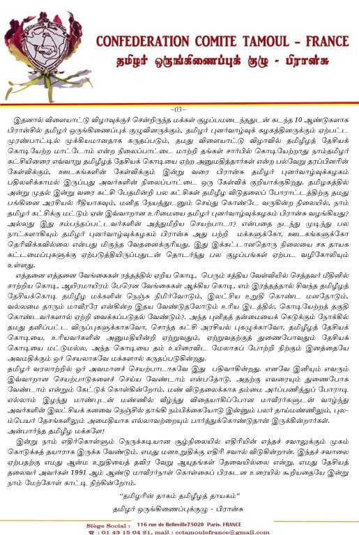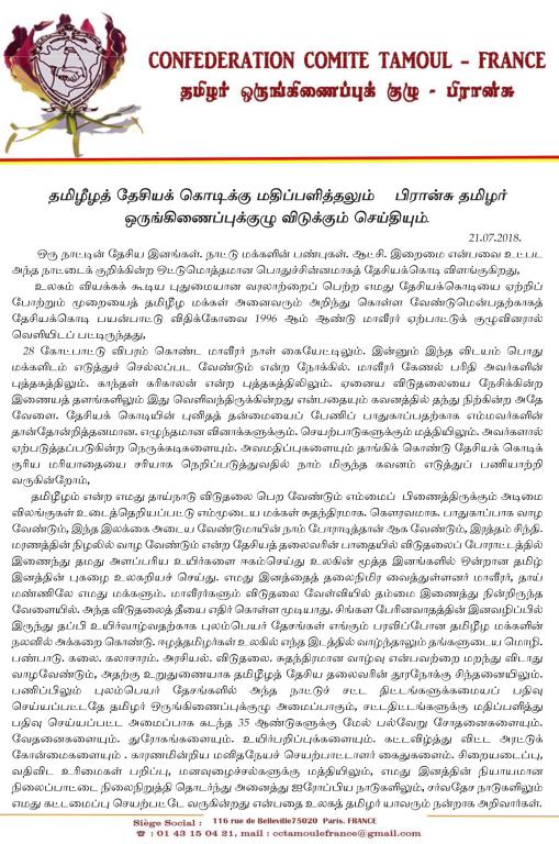 சிறப்பு செய்திகள்புலத்துச்செய்திகள் தமிழீழத் தேசியக் கொடிக்கு மதிப்பளித்தலும் பிரான்சு தமிழர் ஒருங்கிணைப்புக்குழு விடுக்கும் செய்தியும் By Admin - July 21, 2018 0 644