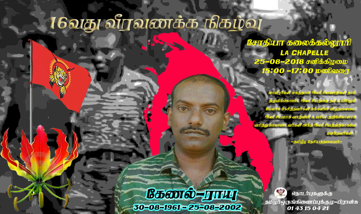 கேணல் ராயுவின் நினைவுகள் ஆண்டுகள் 16 கடந்து விட்ட போதிலும் அந்த மாவீரனையயும், விடுதலைக்காய் தம்முயிர் ஈந்த அனைத்து மாவீரர்களையும், மக்களையும், நினைந்து சுடர் ஏற்றி மலர் கொண்டு வீர வணக்கம் செய்வோம்.
