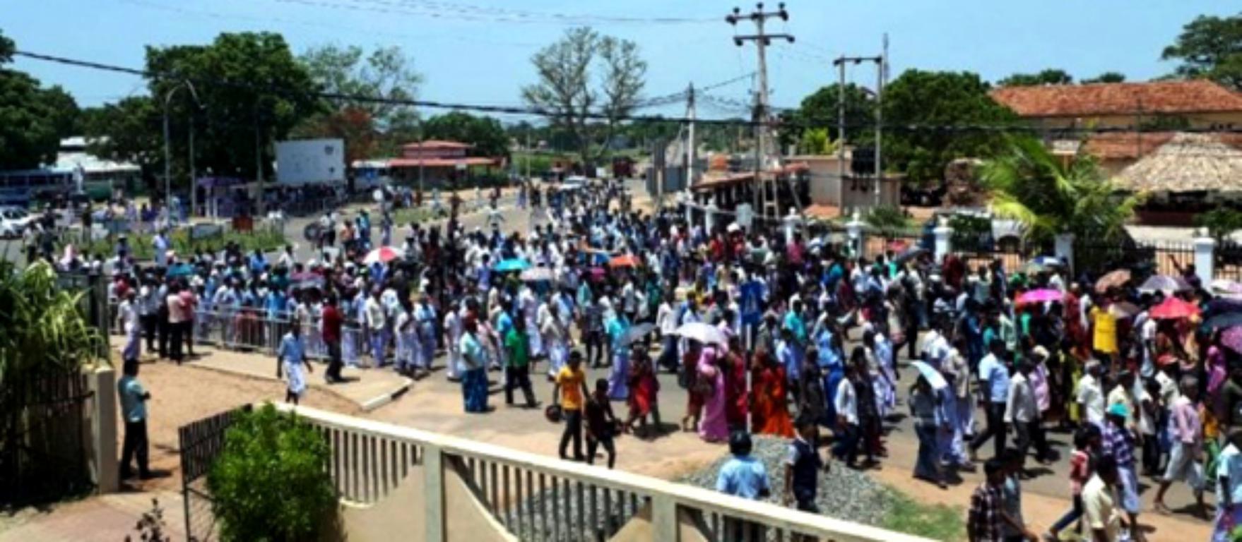மகாவலி வலயம் என்ற போர்வையில் முல்லைத்தீவு மாவட்டத்தை ஆக்கிரமிக்கும் நோக்கில் மக்களின் காணிகள் அபகரிக்கப்படுவதை தடுத்து நிறுத்தக் கோரி முல்லைத்தீவில் மாபெரும் பேரணி இன்று நடைபெற்றது.
