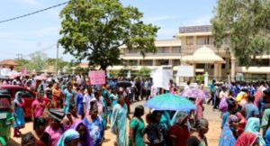 சிங்கள குடியேற்றத்தை தடுத்து நிறுத்துமாறு கோரி பல வாசகங்கள் பொறிக்கப்பட்ட பதாதைகளை ஏந்தியவாறு மக்கள் போராட்டத்தில் கலந்து கொண்டனர். கலந்துகொண்டனர்.