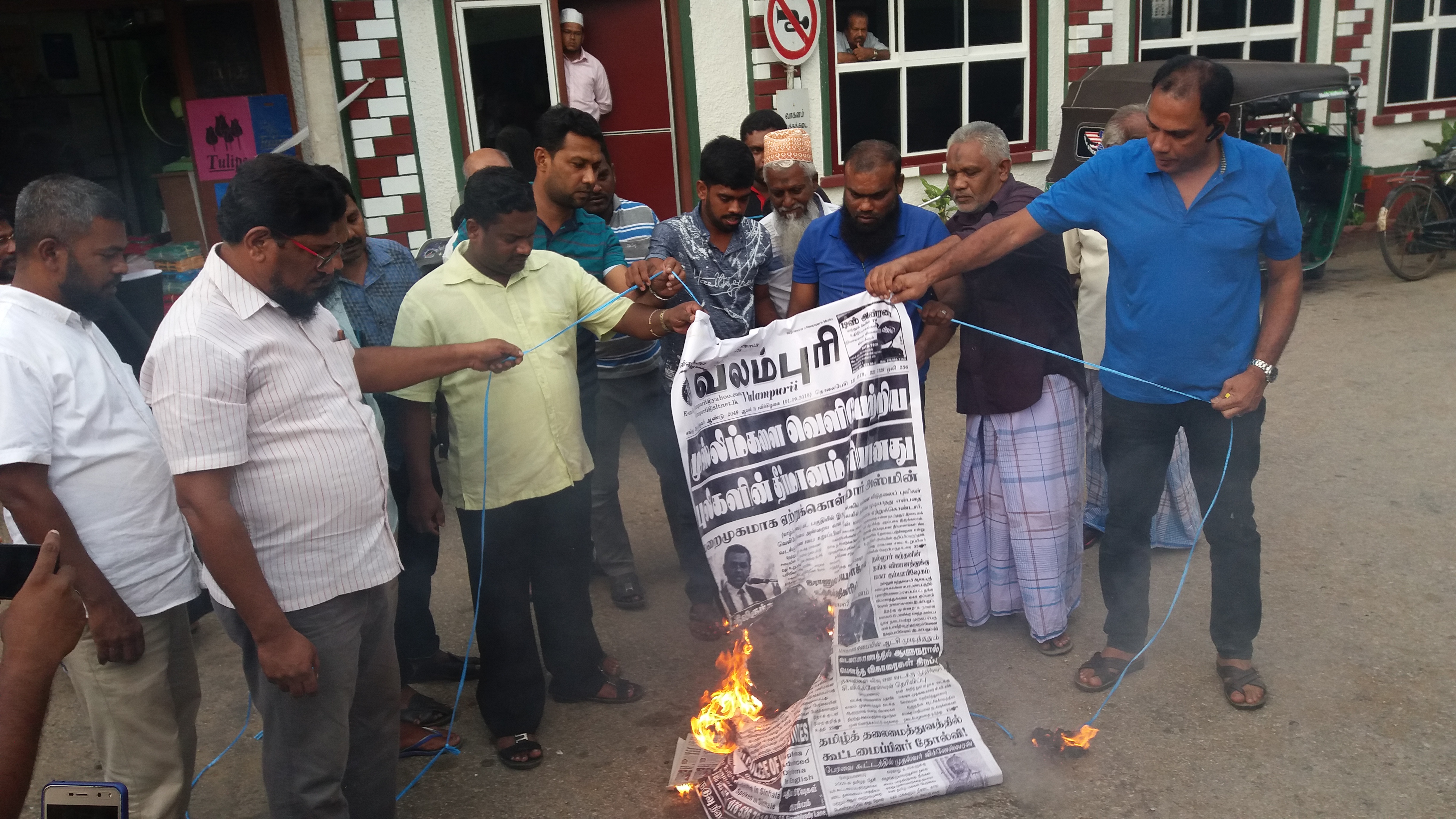 இன்றைய தினமான சனிக்கிழமை (நேற்று) யாழ்.நகரில் வைத்து பன்னிரெண்டு நபர்களை கொண்ட சிறு அணியொன்று வலம்புரி பத்திரிகையின் இன்றைய (நேற்றைய) பதிப்பின் மாதிரியினை தீக்கிரையாக் கியுள்ளது.