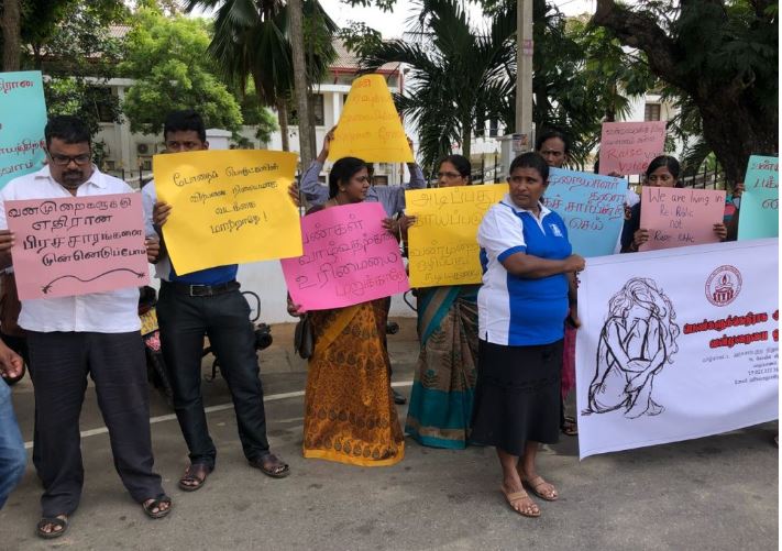 குறித்த ஆர்ப்பாட்டம் இன்று செவ்வாய்க்கிழமை 04ம் திகதி காலை 10.00 மணிக்கு யாழ் மாவட்ட செயலகத்தின் முன்னால் நடாத்தப்பட்டிருந்தது.இந்த ஆர்ப்பாட்டத்தில், மகளிர் அமைப்புக்கள், பொது மக்கள் ஆகியோர் பங்கெடுத்திருந்தனர்.