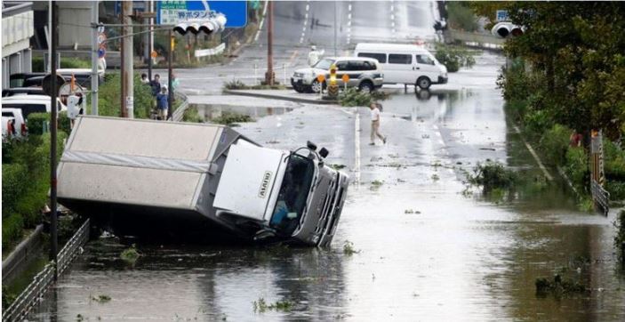 ஜப்பானின் மேற்கு பகுதியில் கரையை கடந்த ஜெபி என்று பெயரிடப்பட்ட இந்த சூறாவளி மணிக்கு 172 கி.மீட்டர் வேகத்தில் வீசியதாகவும், அதனால் மிக பயங்கர மழை பெய்ததாகவும் செய்திகள் தெரிவிக்கின்றன.