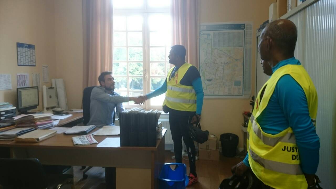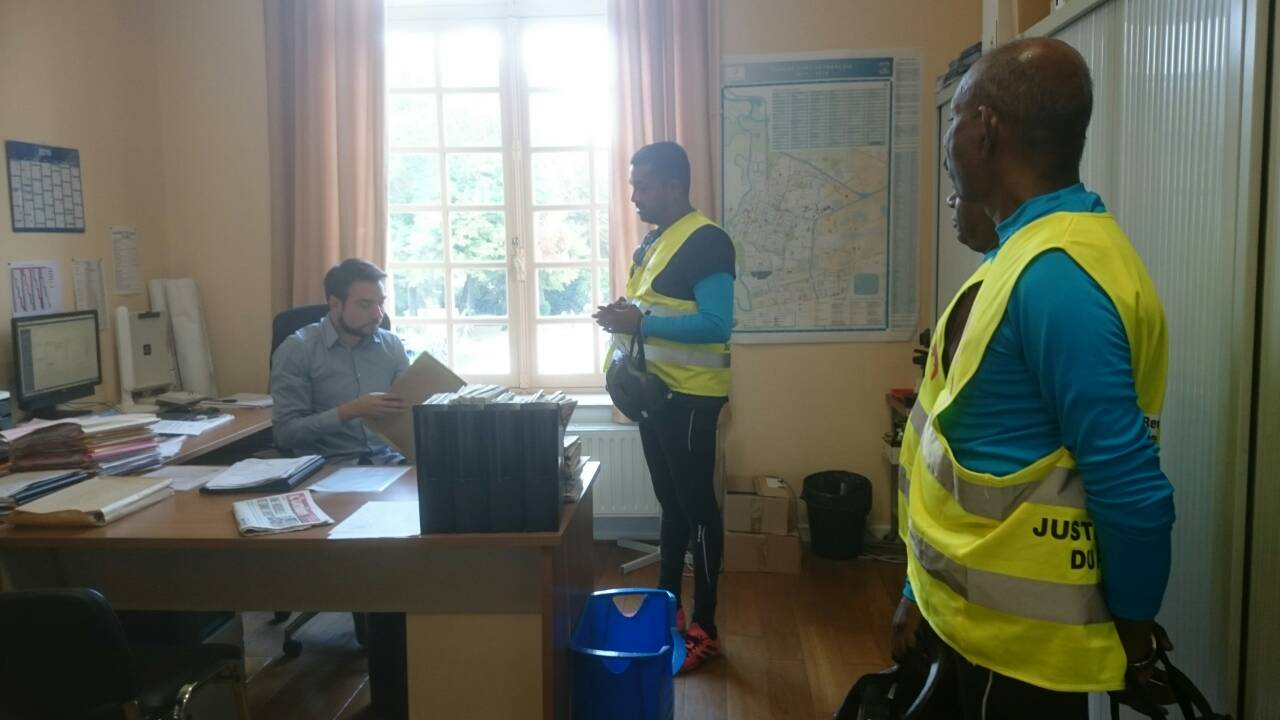 சுமார் 70 கிலோமீற்றர் கடும் மலைப்பாங்கான பாதைகளுக்கு ஊடாகப் பயணம் செய்து Vitry le Francois நகரை இன்று மாலை சென்றடைந்து அங்கு நகரசபை மண்டபத்தில் நகரபிதாவிற்கான கோரிக்கைகள் அடங்கிய மனு கையளிக்கப்பட்டுள்ளது.