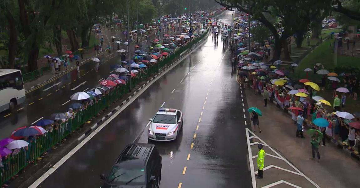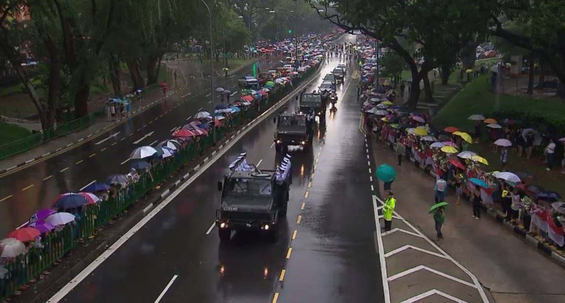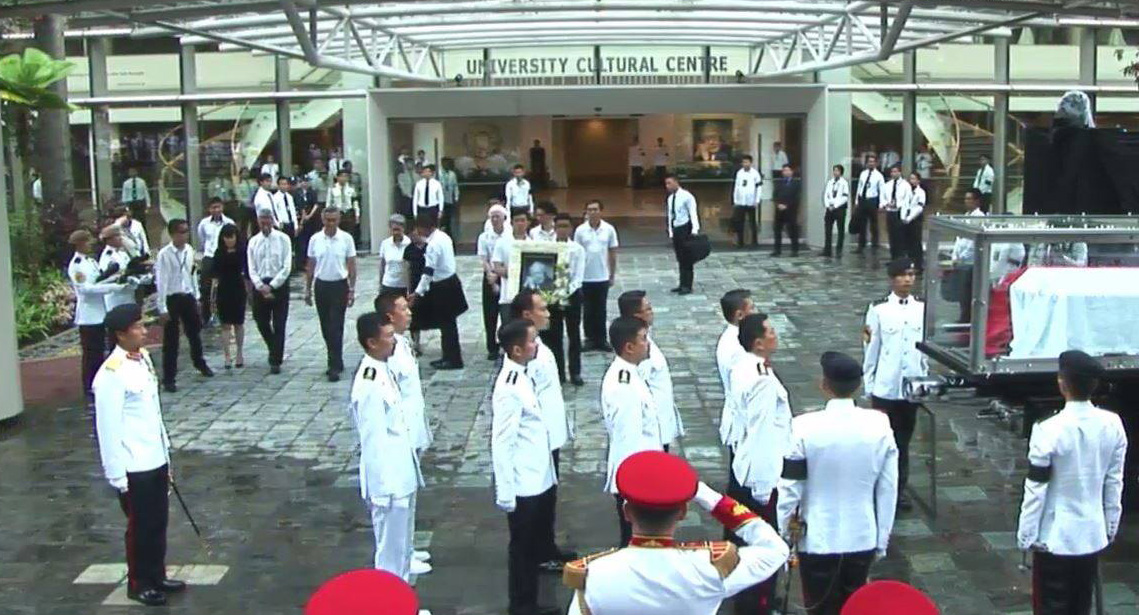 கடந்த திங்கட்கிழமை தனது 91அவது வயதில் மரணமடைந்த லீ குவான் யூவின் இறுதி ஊர்வலம் அந்நாட்டு பாராளுமன்ற வளாகத்தில் இருந்து ஆரம்பித்து, தேசிய பல்கலைக்கழக வளாகத்தில் முடிவடைந்தது. 15 கிலோமீற்றர் கொண்ட இந்த இறுதி ஊர்வலத்தில் மரியாதை செலுத்துவதற்காக ஆயிரக்கணக்கான மக்கள் வீதியின் இரு மருங்குகளிலும் மழையையும் பொருட்படுத்தாமல் கூடி நின்றனர்.