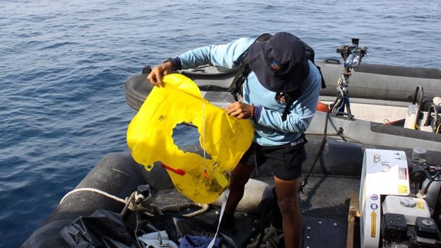 இந்தோனீசியாவின் பேரழிவு மீட்பு முகமையின் தலைவர் கடலில் கண்டெடுக்கப்பட்ட உடமைகளின் படத்தை டிவிட்டரில் பகிர்ந்துள்ளார்.