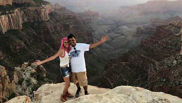 அமெரிக்காவில் வாழும் இந்திய தம்பதிகளான விஷ்ணு விஷ்வநாத், மீனாட்சி மூர்த்தி பலதரப்பட்ட சுற்றுலாத்தளங்களுக்கும் சென்று தங்களது அனுபவங்களை சமூக வலைதளங்களில் பதிவிட்டு வருகின்றனர். அதன் ஒருபகுதியாக யோசெமைட் தேசிய பூங்காவுக்கு சுற்றுலா சென்று மலைப்பகுதியின் முகடில் ஆபத்தான நிலையில், செல்பி எடுத்துள்ளனர்.