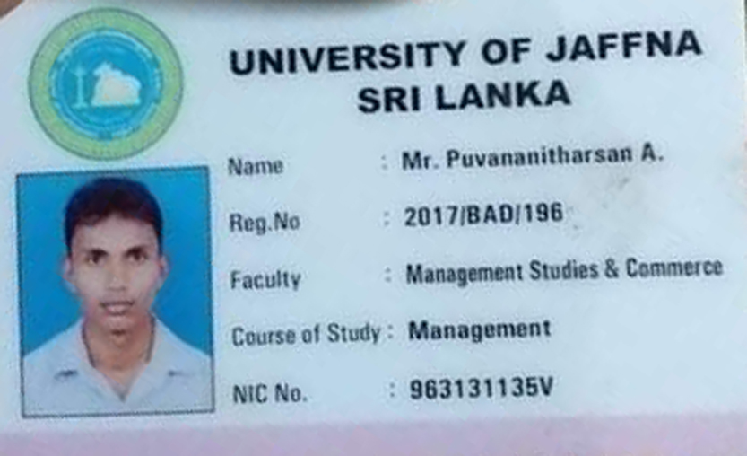 யாழ்.பல்கலைக்கழகத்தில் முகாமைத்துவ பீடத்தில் முதலாம் வருடத்தில் கற்கும் யாழ். ஊரெழு வடக்கு சுன்னாகத்தைச் சேர்ந்த அழகுராசா புவனநிதர்சன் (வயது 22) என்ற மாணவனே உயிரிழந்தவராவார்.