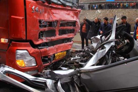 சீனாவின் எக்ஸ்பிரஸ் சாலையில் உள்ள சுங்கச்சாவடி அருகே சரக்கு பாரவூர்தி ஒன்று திடீரென ஓட்டுனரின் கட்டுப்பாட்டை இழந்தது. இதனால் எதிரே வந்த கார் உள்ளிட்ட வாகனங்களின் மீது அடுத்தடுத்து மோதி விபத்து ஏற்பட்டது.