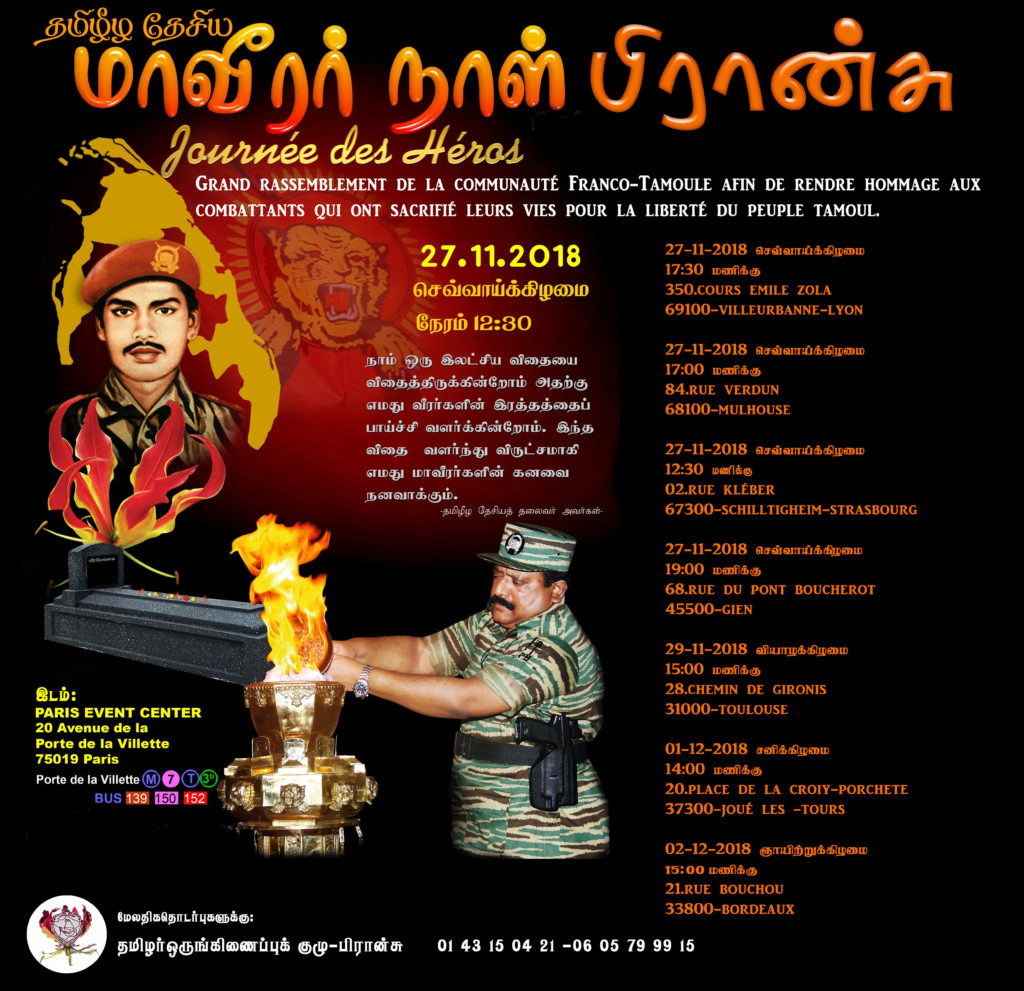 சிறப்பு செய்திகள்புலத்துச்செய்திகள் பிரான்சு பிராந்திய மாவீரர் நாள் 2018 நிகழ்வுகள்! By Admin - November 8, 2018 0 445 பிரான்சு பாரிசு மற்றும் பிராந்தியங்களில் தமிழீழத் தேசிய மாவீரர் நாள் 2018 நடைபெறும் இடங்களின் விபரங்கள்