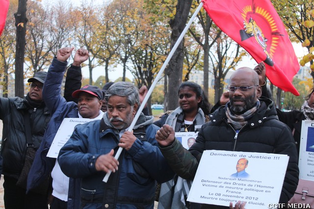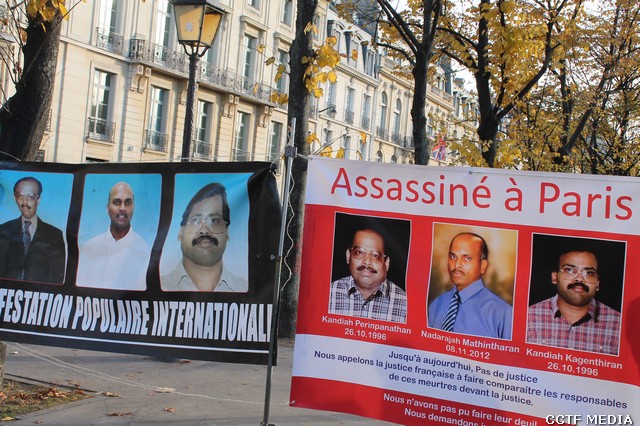 மாலை 15.00 மணி தொடக்கம் 17.00 மணிவரை பிரான்சு பாராளுமன்ற முன்றலில், பாரிசில் 26.10.1996 அன்று படுகொலை செய்யப்பட்ட விடுதலைப் புலிகளின் அனைத்துலக நிதிப் பொறுப்பாளர் லெப்.கேணல் நாதன், ஈழமுரசு நிறுவக ஆசிரியர் கப்படன் கஜன் மற்றும் 08.11.2012 அன்று பரிசில் படுகொலை செய்யப்பட்ட தமிழர் ஒருங்கிணைப்புக்குழு பிரான்சின் பொறுப்பாளர் கேணல் பரிதி ஆகியோரின் படுகொலைக்கு நீதி கோரி கவனயீர்ப்பு ஒன்று கூடலும் இடம்பெற்றது. இந்நிகழ்வுகளில் உணர்வாளர்கள் பலரும் கலந்துகொண்டனர்.