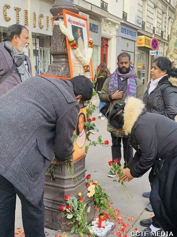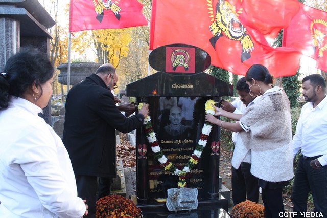 பாரிசில் 08.11.2012 அன்று படுகொலை செய்யப்பட்ட தமிழர் ஒருங்கிணைப்புக் குழு – பிரான்சின் பொறுப்பாளர் கேணல் பரிதி அவர்களின் 6 ஆம் ஆண்டு வணக்க நிகழ்வு இன்று (08.11.2018) வியாழக்கிழமை காலை 9.00 மணிக்கு அவர் படுகொலை செய்யப்பட்ட இடத்தில் மலர்வணக்கமும், சுடர்வணக்கமும் இடம்பெற்றது. இந்நிகழ்வில் கேணல் பரிதி அவர்களின் தாயார் சுடர் ஏற்றி மலர்வணக்கம் செலுத்தினார்.