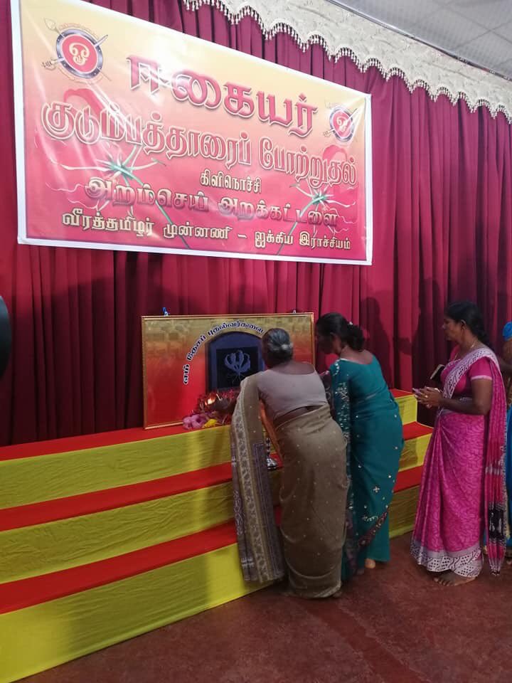 ஈழச்செய்திகள்சிறப்பு செய்திகள் கிளிநொச்சியில் மாவீரர்களின் பெற்றோர் மதிப்பளிப்பு! By Admin - November 23, 2018 0 368 கிளிநொச்சியில் மாவீரர்களின் பெற்றோர்கள் உரித்துடையோர் மதிப்பளிக்கப்பட்டுள்ளனர். நேற்று வியாழக்கிழமை கிளிநொச்சியில் சிறப்பாக ஒழுங்கமைக்கபட்ட இடத்தில் குறித்த மாவீரர் குடும்ப உரித்துடையோர் மதிப்பளிக்கப்பட்டுள்ளனர்.