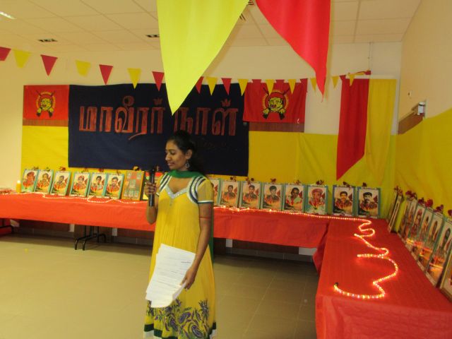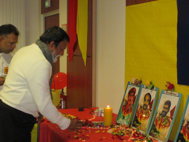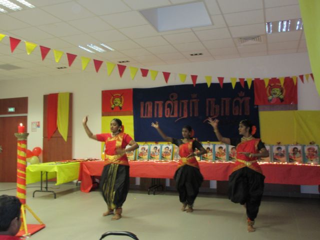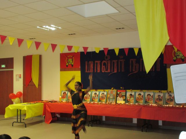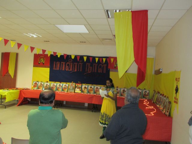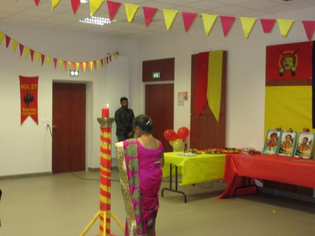 அகவணக்கத்துடன் மாவீரர் துயிலும் இல்லப்பாடலுடன் ஈகைச்சுடர் ஏற்றி வைக்கப்பட்டு, ஏனைய மாவீரர்கள் சகோதர உறவுகளும் சுடர்ஏற்ற சூரியத்தேவனின் வீரர்களே பாடலுடன் பொதுமக்கள் இளையவர்கள் குழந்தைகள் சுடர் ஏற்றி வைத்தனர். தொடர்ந்து பாரிசிலிருந்து மாவீரர் நினைவையும், நிகழ்வையும் மகிமைப்படுத்த இந்நிகழ்வில் மாவீரர்பாடலுக்கும், நாம் ஒருநாளும் வீழ்ந்து விட மாட்டோம் என்ற உறுதிப்படுத்தும் வகையில் நடனத்தையும், தமிழினத்தின் ஒரே ஆதாரபுருசன் மிகப்பெரும் சக்தியுமாகிய தமிழீழ தேசத்தின் தலைவர் மேதகு. வே. பிரபாகரன் அவர்கள்தான் என்பதையும் வெளிபடுத்தி தேசியத்தலைவரின் பாடல்களுக்கு நடனம் வழங்கியிருந்தனர். மாவீரர் பாடல்களையும், விடுதலைப்பாடல்களையும், தேசியத்தலைவர் பாடல்களையும் தேசப்பாடல் பாடகர் திரு. கிருபா அவர்கள் உணர்வு பூர்வமாக வழங்கியிருந்தார்.