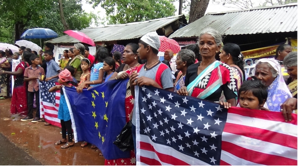இவ்வார்ப்பாட்டத்தின் போது எங்களது பிள்ளைகள் எமக்கு வேண்டும், எமது உறவுகள் எமக்கு வேண்டும், அமெரிக்காவே எமது பிரச்சனைக்கு தீர்வை பெற்றுத்தர வரவேண்டும் போன்ற கோசங்களை எழுப்பியவாறு ஆர்ப்பாட்டத்தில் ஈடுபட்டிருந்தமை குறிப்பிடத்தக்கது.