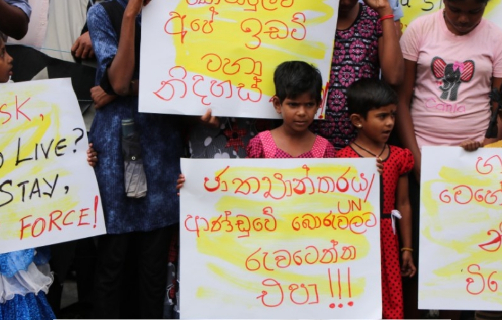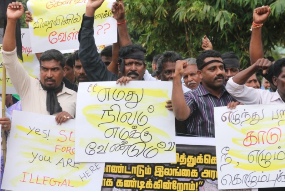 போராட்டத்தில் ஈடுபட்டவர்கள் “எழுந்து பறந்த காடு எழும்பி கொழும்புக்கு ஓடு , விளைந்த நிலமடா பகையே வீணாய் இருப்பதேன் நீ சுமையே , வீதியில் எங்கள் கேள்வி விரைவினில் உனக்கு வேள்வி ,தமிழர்கள் வயிற்றில் அடி தறுதலை உனக்கு ஏன் கொடி, இராணுவமே வெளியேறு ,நிலம் வேண்டும் அதுதான் எமது சுதந்திரம் ,எமது நிலம் எமக்கு வேண்டும்”உள்ளிட்ட பல்வேறு வாசகங்கள் எழுதப்பட்ட பதாதைகளை தாங்கியவாறும் வெளியேறு வெளியேறு இராணுவமே வெளியேறு , எமது நிலம் எமக்கு வேண்டும் என்றவாறான பல்வேறு கோசங்களை எழுப்பியவாறும் போராட்டத்தில் ஈடுபட்டனர்.