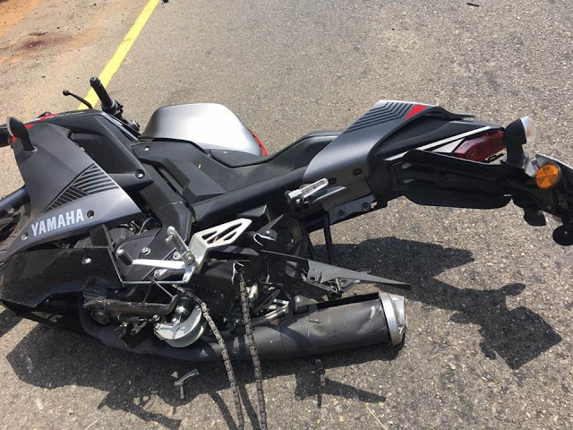 உந்துருளியில் பூநகரி நோக்கிப் பயணித்தபோது சங்குப்பிட்டிப் பாலத்திற்கு அருகிலுள்ள வளைவில் திருப்பிய வேளை உந்துருளி கட்டுப்பாட்டினை இழந்து வீதி ஓரமாகக் காணப்பட்ட மின்கம்பத்துடன் மோதி விபத்திற்குள்ளாகியுள்ளது.