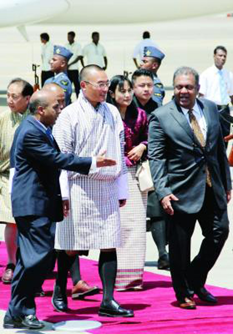 இலங்கைக்கான விஜயத்தை மேற்கொண்டு நேற்றுக்காலை காலை 10 மணியளவில் கட்டுநாயக்க விமான நிலையத்தை வந்தடைந்த பூட்டான் பிரதமரை வெளிவிவகார அமைச்சர் மங்கள சமரவீர வரவேற்றார்.