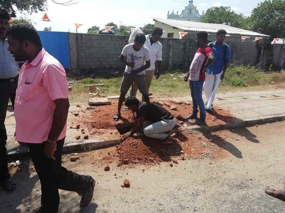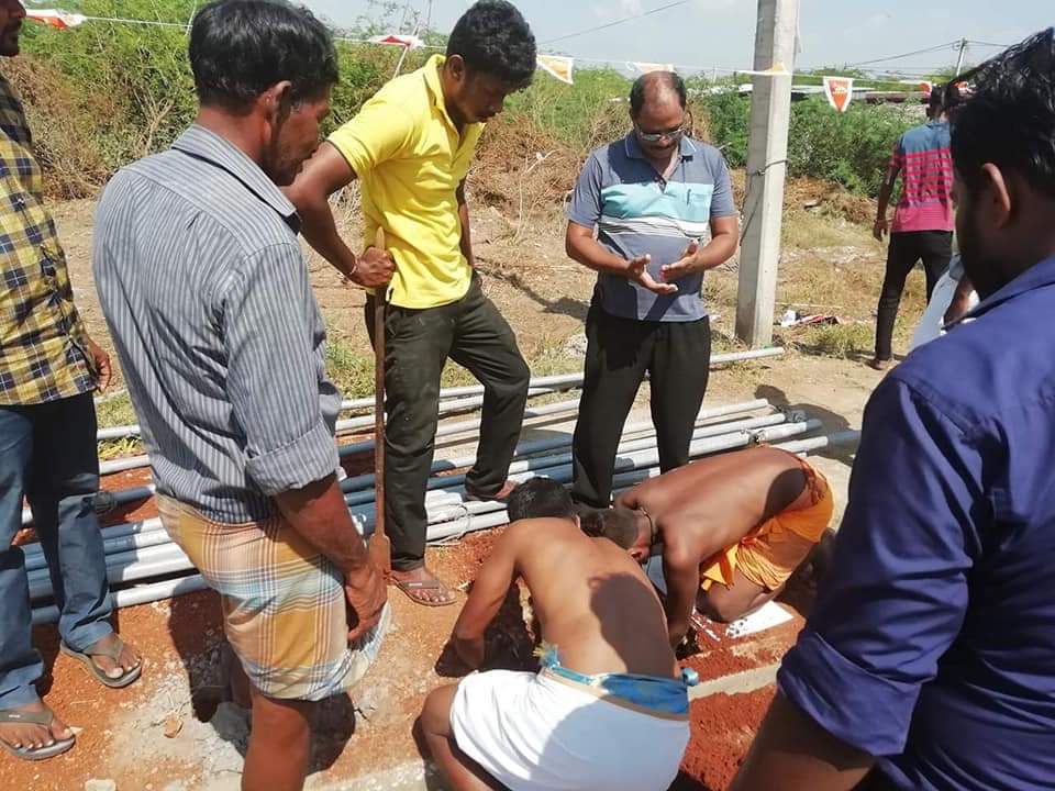 திருக்கேதீஸ்வர நுழைவாயிலில் கிறிஸ்தவ மதவெறியர்களால் நேற்று அராஜகமாக பிடுங்கியெறியப்பட்ட வளைவு நீதிமன்ற உத்தரவின்பேரில் இன்று மீண்டும் அமைக்கப்பட்டு வருகின்றது.