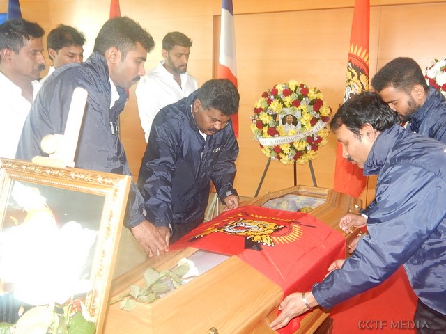 பிரான்சு தமிழர் ஒருங்கிணைப்புக்குழுவின் தேசிய செயற்பாட்டாளரும் எமது தேசத்தின் விடுதலையை ஆழமாக இறுதிவரை நேசித்தவருமான நாட்டுப் பற்றாளர் அலெக்ஸாண்டர் பவுஸ்ரின் அவர்களின் வீரவணக்க நிகழ்வு இன்று 21.03.2019 வியாழக்கிழமை இப்பினே வில்தனுஸ் பகுதியில் பிற்பகல் 15.00 மணி முதல் 16.30 மணி வரை உணர்வெழுச்சியோடு இடம்பெற்றது. முதலில் நாட்டுப்பற்றாளர் அலெக்ஸாண்டர் பவுஸ்ரின் அவர்களின் வித்துடல் மீது தமிழீழத் தேசியக் கொடி போர்த்தி மதிப்பளிப்புச் செய்யப்பட்டது. இந்நிகழ்வில் பொதுச்சுடரினை கேணல் பருதி அவர்களின் தாயார் ஏற்றிவைக்க ஈகைச்சுடரினை நாட்டுப்பற்றாளர் அலெக்ஸாண்டர் பவுஸ்ரின் அவர்களின் துணைவியார் ஏற்றிவைத்தார். வித்துடலுக்கான மலர்மாலையை நாட்டுப்பற்றாளர் அலெக்ஸாண்டர் பவுஸ்ரின் அவர்களின் குடும்பத்தினர் ஒன்றாக அணிவித்து மலர்வணக்கம் செலுத்தியதைத் தொடர்ந்து அகவணக்கம் இடம்பெற்றது. தேசிய செயற்பாட்டாளர் அலெக்ஸாண்டர் பவுஸ்ரின் அவர்கள், தமிழீழ விடுதலைப்புலிகளின் அனைத்துலகத் தொடர்பகத்தினால் நாட்டுப்பற்றாளர் என மதிப்பளிக்கப்பட்டார். குறித்த மதிப்பளிப்பு தொடர்பான அறிக்கை வாசிக்கப்பட்டது. பிரான்சு தமிழர் ஒருங்கிணைப்புக்குழு மற்றும் ஏனைய கட்டமைப்புக்கள் பலவற்றினதும் அறிக்கைகளும் வாசித்தளிக்கப்பட்டன. சமநேரத்தில் நிகழ்வில் கலந்துகொண்ட அனைவரும் நாட்டுப்பற்றாளர் அலெக்ஸாண்டர் பவுஸ்ரின் அவர்களின் வித்துடலுக்கு அணிவகுத்து கண்ணீரோடு மலர்வணக்கம் செலுத்தியதுடன், பலரும் நாட்டுப்பற்றாளர் அலெக்ஸாண்டர் பவுஸ்ரின் அவர்களின் நினைவாக உரையாற்றியதுடன் கவிதைகளையும் அறிக்கைகளையும் கண்ணீர்மல்க வாசித்தளித்தனர். தமிழரின் தாகம் தமிழீழத் தாயகம் என்ற தாரகமந்திரத்துடன் வீரவணக்க நிகழ்வு நிறைவுகண்டது. தொடர்ந்து எதிர்வரும் 23.03.2019 சனிக்கிழமை நாட்டுப்பற்றாளர் அலெக்ஸாண்டர் பவுஸ்ரின் அவர்களின் இல்லம் அமைந்துள்ள கிறினி பகுதியில் காலை 10.00 மணிக்கு இறுதி வணக்க நிகழ்வு இடம்பெறவுள்ளதாக அறிவிக்கப்பட்டது.