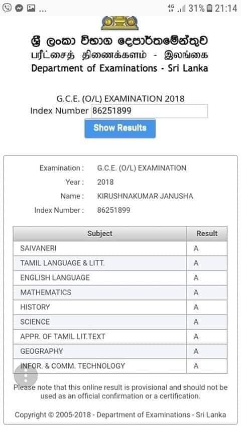 தந்தையை சிறு வயதில் இழந்து துன்பங்கள் பல சுமந்து தாயினது அரவணைப்பில் க.பொ.த. சாதாரண தரத்தில் 9A பெறுபேறு பெற்ற முல்லைத்தீவு வித்தியானந்த கல்லூரி மாணவி ஜானுஷாவிற்கு பலரும் வாழ்த்துக்களைத் தெரிவித்து வருகின்றனர்.