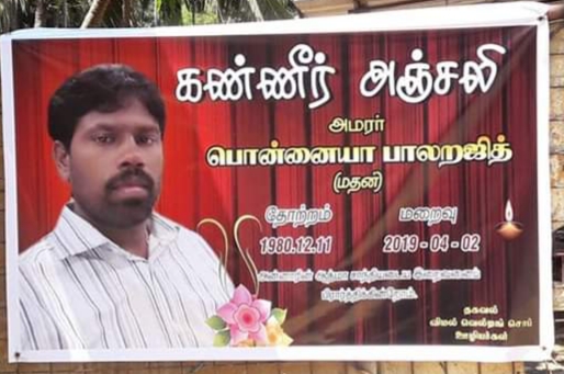 மேஜர் புகழ் மாறனின் சகோதரருமான கொக்குவிலைச் சேர்ந்த பொன்னையா பாலரஜித் (மதன்) (வயது 39) என்பவரே உயிரிழந்தவராவார்.