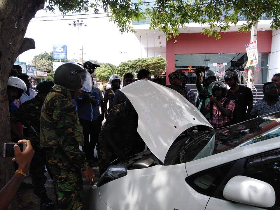 யாழ். போதனா வைத்தியசாலைக்கு அருகில் மர்மமான வாகனம் ஒன்று நிற்பதாக பொலிஸாருக்கு தகவல் வழங்கப்பட்டது.
