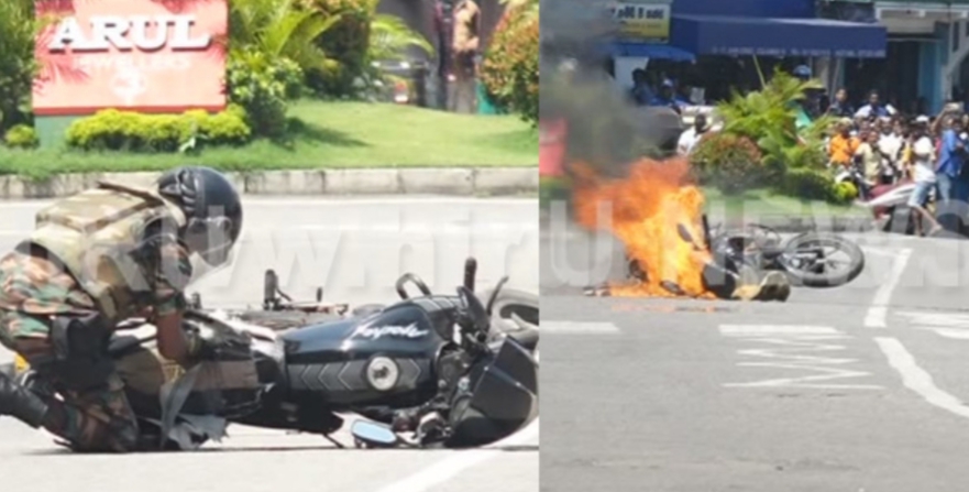 இதனை தொடர்ந்தே குறித்த உந்துருளி பாதுகாப்பு படையினரால் வெடிக்க வைக்கப்பட்டதாகத் தெரிவிக்கப்பட்டுள்ளது.