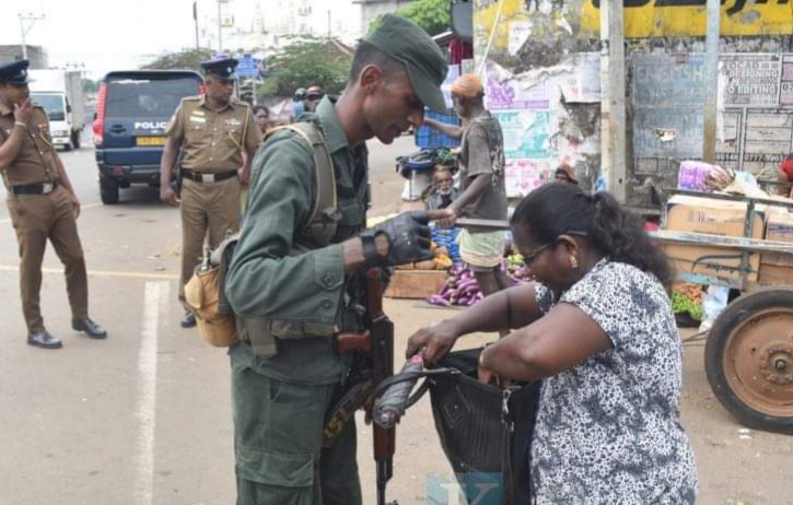 சுற்றிவளைப்பு பகுதியிலிருந்து வெளியேறும் பொதுமக்கள் கடும் சோதனையின் பின் வெளியே செல்ல அனுமதிக்கப்பட்டனர்.