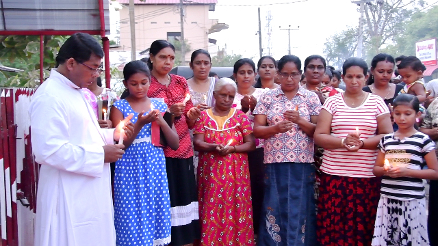 ஆலய முன்றலில் கூடிய பொதுமக்கள் மெழுகுவர்த்தி ஏற்றி இறைவனைப் பிரார்த்தித்தனர்.