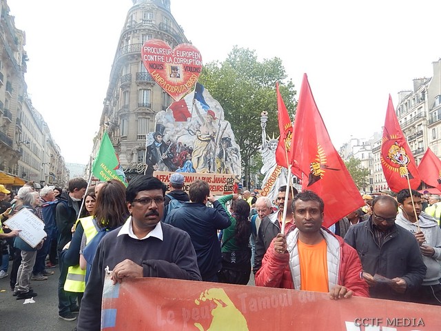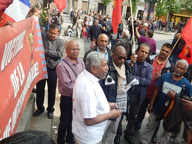 பிரான்சில் பாரிஸ் montparnasse பகுதியில் இருந்து பிற்பகல் 14.00 மணியளவில் பல்நாட்டவர்களுடனும் ஆரம்பித்த மே 1 தொழிலாளர் நாள் பேரணி பாரிஸின் பிரதான வீதிகளின் ஊடாக நகர்ந்து Porte de italy வரை இடம்பெற்றது. பிரான்ஸ் தொழிற்சங்கங்களும் வெளிநாட்டவர்களுடன் இணைந்து பிரான்சு தமிழர் ஒருங்கிணைப்புக் குழுவின் ஏற்பாட்டில் நிகழ்வில் தமிழ் மக்கள் உணர்வெழுச்சியுடன் கலந்துகொண்டிருந்தனர். பல்வேறுபட்ட இனங்களினதும் கட்சிகளினதும் அமைப்புகளினதும் ஒன்றிணைந்த அணிவகுப்புக்கு மத்தியில் தமிழ் மக்களின் பேரணியும் இடம்பெற்றது. இம்முறையும் சில அசம்பாவிதங்கள் இடம்பெற்றுள்ளபோதும் பிரெஞ்சுக்காவல்துறையின் அதி உச்ச பாதுகாப்புக்காரணமாக அவை தவிர்க்கப்பட்டிருந்தன. ஊர்வலத்தின் நிறைவில் பிரான்சு தமிழீழ மக்கள் பேரவைப் பொறுப்பாளர் திருச்சோதி அவர்கள் உரை நிகழ்த்தியிருந்தார், அவர் தனது உரையில், பல கெடுபிடிகள் இடம்பெறும் என்று எதிர்பார்க்கப்பட்டிருந்தபோதும், இந்நிகழ்வில் உறுதியோடு கலந்துகொண்டவர்களை பாராட்டியிருந்ததுடன், தாயகத்தில் குறித்த தொழிலாளர் நாள் இடம்பெறாதபோதும், தமிழ் மக்களின் சார்பில் நாமே இப்போராட்டத்தை முன்னெடுக்கின்றோம் எனவும் தெரிவித்திருந்தார். நிறைவாகத் தமிழரின் தாகம் தமிழீழத் தாயகம் என்ற தாரக மந்திரத்துடன் பேரணியில் கலந்துகொண்டவர்கள் அமைதியாக கலைந்துசென்றனர். இம்முறை பிரான்சில் அதியுச்ச பாதுகாப்புக்கு மத்தியில் பெரும் எண்ணிக்கையான காவல்துறையினர் புடைசூழ தொழிலாளர் நாள் பேரணி நடைபெற்றுமுடிந்துள்ளமை குறிப்பிடத்தக்கது.