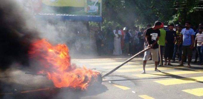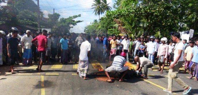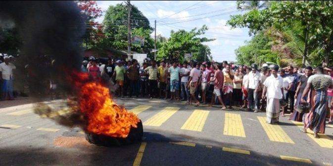 இந்தச் சம்பவத்துக்கு எதிர்ப்பு தெரிவித்து அந்தப் பகுதி மக்கள் வீதியில் இறங்கி ரயர்களை எரித்து ஆர்ப்பாட்டத்தில் ஈடுபட்டு வருகின்றனர். இதனால் போக்குவரத்துப் பாதிக்கப்பட்டுள்ளது. ஏ – 9 வீதி தற்காலிகமாக மூடப்பட்டுள்ளது.