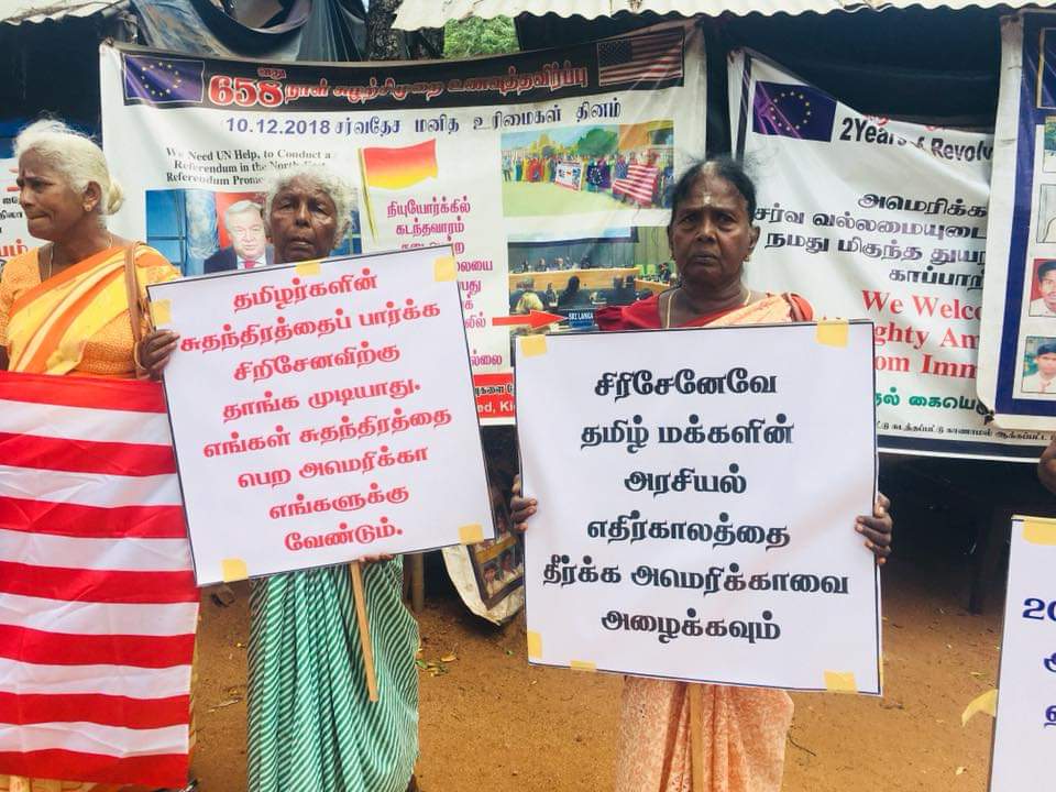 இன்று நாம் ஜனாதிபதி சிறிசேனவுக்கு எதிராக ஆர்ப்பாட்டம் செய்கின்றோம். தமிழர்களின் வாக்குகள் பெற்று அவர் ஜனாதிபதியாக தேர்ந்தெடுக்கப்பட்டார்.