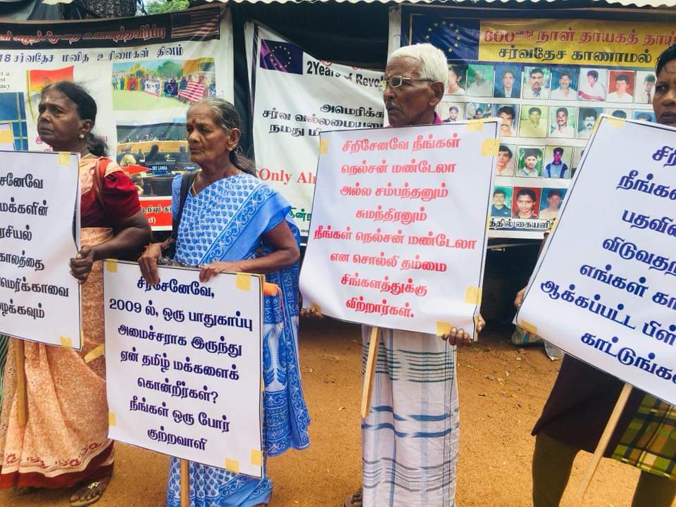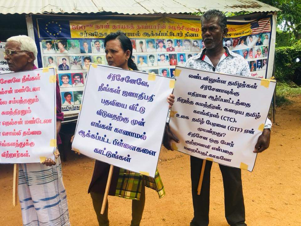 ‘சிறிசேனவே நீங்கள் ஜனாதிபதி பதவியை விட்டு விலகுவதற்கு முன் எங்கள் காணாமல் ஆக்கப்பட்ட பிள்ளைகளை காட்டுங்கள்’