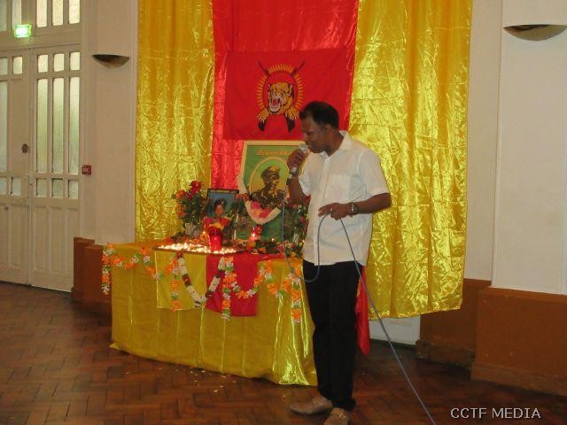 தமிழர் ஒருங்கிணைப்புக்குழு பிரான்சு, மாவீரர் பணிமனையின் ஏற்பாட்டில் இடம்பெற்ற இந்நிகழ்வில் பொதுச்சுடரை பிரான்சு மாவீரர் பணிமனைப் பொறுப்பாளர் நித்தி முகுந்தினி அவர்கள் ஏற்றிவைக்க ஈகைச்சுடரினை 20.09.1995 அன்று காங்கேசன்துறையில் வீரச்சாவைத்தழுவிய கடற்கரும்புலி லெப்.கேணல் கீர்த்தி அவர்களின் சகோதரி ஏற்றிவைத்து மலர்வணக்கம் செலுத்தினார்.